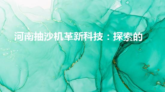 河南抽沙機革新科技:探索的未來?